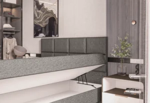 Introductie van de boxspring met opbergruimte Onder de moderne slaapkamerinrichting is de boxspring met opbergruimte een populaire keuze geworden. Het biedt niet alleen comfort en